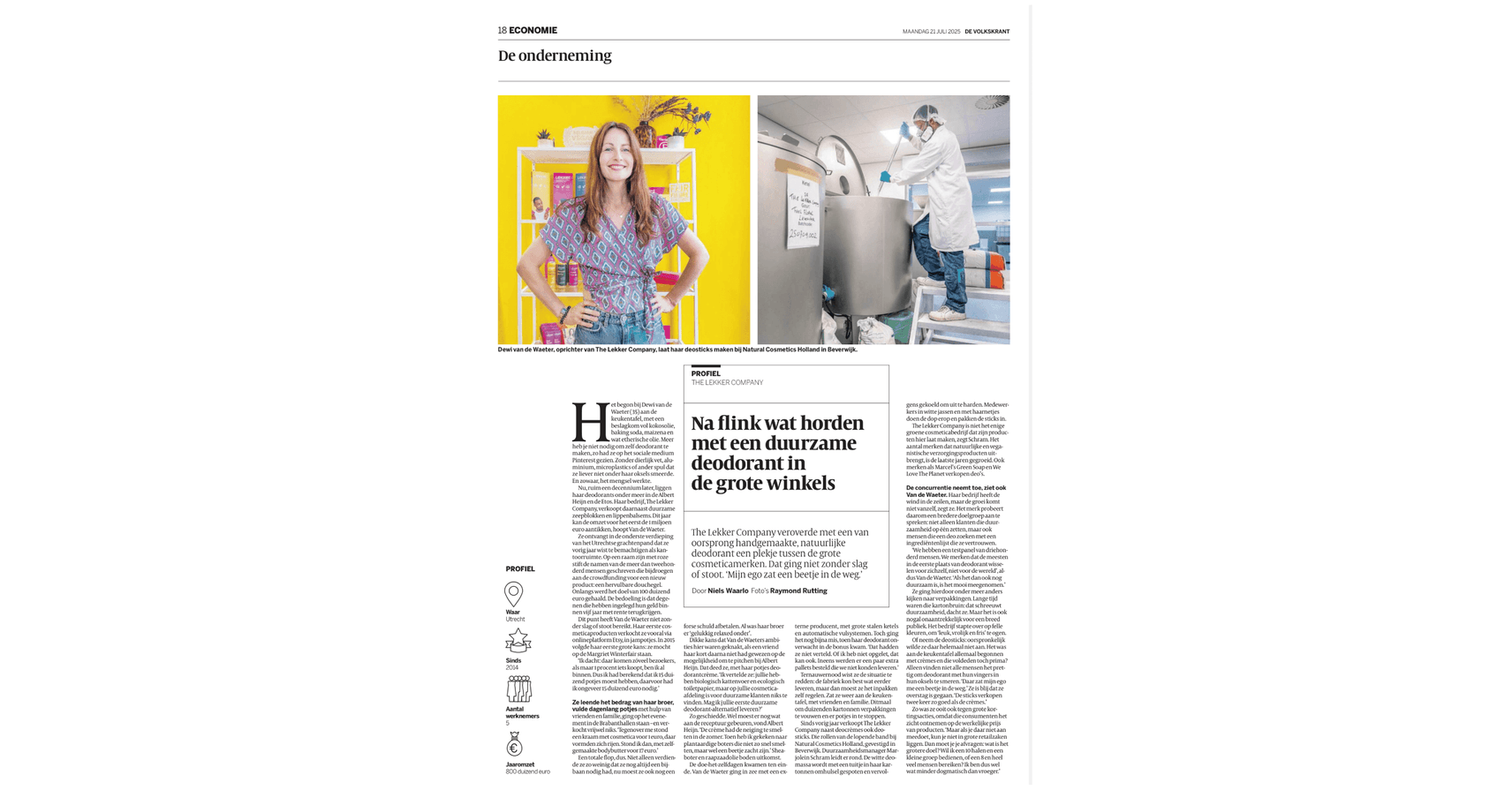 From kitchen table to retail shelves: the Lekker Company’s bold journey What began as a simple DIY experiment at the kitchen table has grown into a standout brand on shelves across the Netherlands. The Lekker Company proves that a clear mission, bold decisions, and a great idea can drive real change in the world of natural care. Natural Cosmetics Holland is proud to be part of that journey.